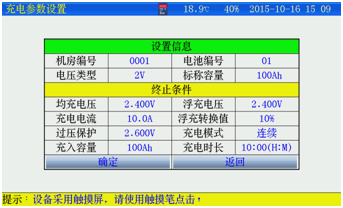 充電時長:最小1分鐘;最大99小時59分。設置完成并確認接線正確后,按確定進入開始充電。