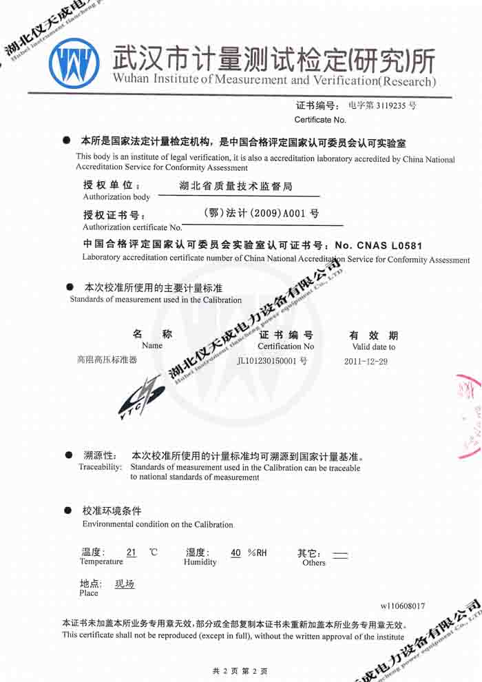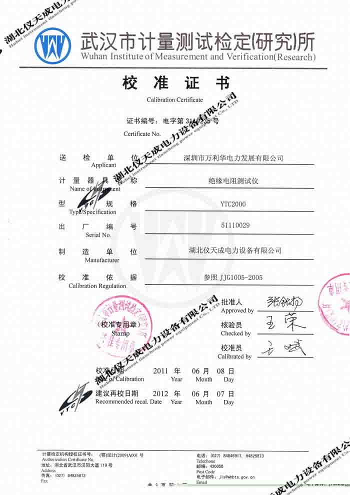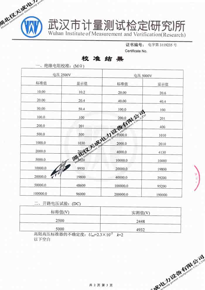 轉(zhuǎn)載:"YTC2000智能雙顯絕緣電阻測(cè)試儀的資質(zhì)證書" 請(qǐng)注明來(lái)源于儀天成電力。 更多技術(shù)問(wèn)題請(qǐng)致電儀天成電力客戶服務(wù):027-87876585,技術(shù)部專線:027-87876585,在線客服:719388481